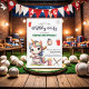 En underbar design med en söt regnbåge som spelar baseboll och elegant kalligrafi! Du kan anpassa inbjudan med dina egna uppgifter.