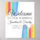 Vackra regnbågsfärger Välkomna till vårt Bröllop-tecken med söt, konstnärliga färgdrag fullt av starkt färg för en HBT-händelse. Anpassa namnen i ett kursivt skript för elegant.