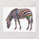 Det här slående vykortet har en digital målning av en vacker zebra. Rand på zebra målas i ljust, regnigt färg. Vårt zebra-vykort skulle vara perfekt för älskare av detta vackra djur, och människor som älskar ljusa färger och mönster. Vykort är perfekt för skapar bilder att hänga på väggen och är ett alternativ till billigt och chic till dyra poster utskrifter.