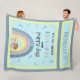 Den här sötfilten har en modern regnbåge med två vita valpar hundar under den. På den översta raden i regnbågen finns det små valparavtryck som klättrar upp uppåt på båda sidor och leder till ett hjärta överst. Typografi säger att det handlar om Rainbows och Puppy Hundar. Breven i "regnbågar" utförs i olika färg och det finns olika hund i färgaden som är spridda över varandra. Bakgrunden är en blå blek himlar med mörkblå och gult gräns. Omvänd sida har en blå punktbakgrund för polka. Anpassa filten högst upp med knappen Anpassa den här mallen. Andra samordningsobjekt som finns i min butik.