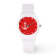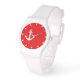 Raka vitt och rött ur med en fästsymbol armbandsur