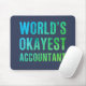 World's Okayest Accountant in sans-serif uppercase blocktering in gradient grunge blend of turcoise blue and ljust grönt.