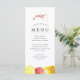 Personliga räktema menykort för din nästa Räkkokt Fest eller skaldjurs händelse. Den har en akvarellillustration av en räka. Under denna finns utrymmen för din unika evenemangsmeny.
