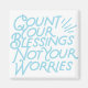 Teal typography citerar "Count your välsignings not your worries" Börja din dag med ett positivt meddelande.