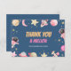 Skicka ett hjärtligt tack efter babyduschen med det här matchande tackkortet. Med samma charmerande astronaut, planet och raketgrafik i mjuk rosa och guld är det här kortet perfekten för att uttrycka sin tacksamhet i celestial stil. Designat att samordna med ditt nedräkningsämne för babydusch, det är ett stellärt sätt att tacka! Observera: Astronautbilderna, planeterna och nattstjärnornas bakgrundsgrafik är fasta inslag och kan inte redigeras, flyttat eller tas bort.
