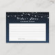 Bröllop-rådgivningskort i stjärnnattskonstruktion. Perfekt för bröllop och på kvällen. PERSONALISERA DET HÄR OBJEKTET Bakgrund färg kan ändras med färg-alternativ för zazzle-bakgrund i online verktyg. För att få en sammanhängande titt, gå till min affär för att se hela samlingen av vår stjärnnattsamling. Artwork designad av Calani May.