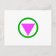 Design med en trygghetssymbol för raka allierade (inverterad rosa triangel omgiven av en grön cirkel) på vit bakgrund