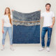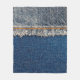 Rakt stygn med orange tråd på blekt denim-väv med fringe kant, på blå denim-bakgrund, text ställe, kopieringsutrymme. Denim Blue jeans väv ram. Worn Jeans Avslappnad Dubbla Färg patch