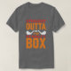 Hockey Player-design T-shirt har guld och röd text på varje sida som läser Rakt utanför straffboxen! Även silhuette hockey-sticks och puck.