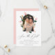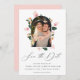 Modern Arch ram, spara datumfotokortet. Ram adorberas med tropiska vattenfärgade blad, blommor och orange citrusfrukter. Eleganten "Spara datumkalligrafi" och koordinerar sann rosa färg.