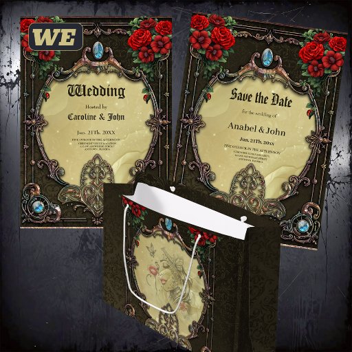 Ram skryter med en opulent design som både utstrålar elegans och sofistikering. Ram har en djup rik som på ett perfekt sätt visar metallförnimmelserna. I de övre hörnen av ram finns fantastiska kluster av starkt röd ros, vars snabba petaler skapar en levande kontrast till det metalliska inslag och en känsla av lyx och stil.