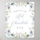 möhippan "Hett Chocolate Pub" poster för en vintermöhippa med ett mjukt, dammigt blått blommigt-skript i ram och elegant.
