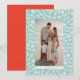 Ram ditt favoritfoto med en gräns av det moderna vita grenar, röda bär och snöflingor på en mint blå bakgrund och skicka ditt personliga budskap om julhälsning den här julhelgen. Hämta kreativ och använda för extra-anpassning för att lägga till foton och text på baksidan av kortet.