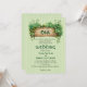 Träet ram med Grey och initialer St patrick's day Irish bröllopsinbjudan. Fira ditt irländska arv med en unik twist genom att välja den här St. Patrick's Day Irish bröllopsinbjudan. I stället för det traditionella klöver-mönstret visar inbjudan vintage-stil en ram av trä med lush grey och initialer av paret lycklig. Mot bakgrund av blek grönt rand lägger det keltiska teckensnittet till en elegant till denna vackra inbjudan och skapar det perfekten för en St. Patrick's Day bröllop firande.