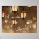 Den här poster innehåller en målning av Ramadan-lamparder tillsammans med texten "Ramadan - Kareem" (som översätts till "Generous Ramadan"). Arabiska typsnitt finns att tillgå och det är enkelt att ändra texten enligt dina önskemål. Utformning av Almawad med inslag från olika källor.