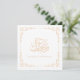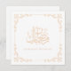 Ramadan Mubarak islamiska hälsningskort som skickas till din familj och dina vänner till firande under denna speciella heliga månad. Det finns en vit bakgrund med en guld arabisk kalligrafi i mitten. Det finns en elegant, ett guldbräckligt virrvarr i färg som går runt det känsliga ram i gräns. Klassisk design. Den engelska texten nedan. Du kan anpassa den här mallen genom att redigera den information som finns på baksidan av kortet och namn på paret. Skript. Modern. Välj papper typ. Kuvert ingår för dig. Hennes linje för design på Zazzle.