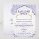 Dela Iftar-ögonblick med dina nära och kära med hjälp av dessa vackra kort, designade för att tillföra en varm och glädjefull atmosfär till ditt Ramadan-bord. Prydda med halvmåne- och stjärnmönster och livfulla Ramadan-färger, utgör de en förtjusande inbjudan till alla familjer och vänner.