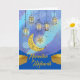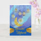 Ramadan Mubarak-hälsningar för Ramadan. Lyktor på natten ovanför en halvmåne och lysande stjärna. Vattenfärger blandade med svart penna och stänk av guld metalliska toner. Lägg till din egen vers inuti som du vill. Konst, bild och vers copyright Shoaff Ballanger Studios, 2022.