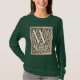 Det här vackra monogrammet ser ut att vara en träkarv. Kapitalet "W" är skrivet i svart medan löv och ram är ett rost färg som gör "W"-utslaget från bakgrunden.