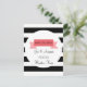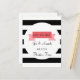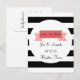 Det här vykortet "spara datumet" har en banderoll utformning på en svart och vit strimlad bakgrund. Anpassa med namn, information och ett speciellt hälsning på baksidan.