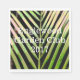 Det strimlade tropiska mönster på dessa Pappra Napkins gjordes av ett originalfoto av ZoeSPEAK från en royal handflatan i solsken, mot en mörk grönt bakgrund av gräs träd. Kontrasten är stark mellan mörkens bakgrund och gultens grönt löv med laxens rosa och skapar att denna abstrakta design från naturen nästan ser ut som ett djurtryck. Det finns text som du kan anpassa till kostym i tillfälle eller ta bort om du vill.