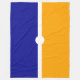 Den här roligten har eleganten en skarp gult och royalets tunna blå halvor i färg, åtskilda av ett skarvfritt, tunt vågrät vitt band med en centrerad, cirkelformad utjämnning.