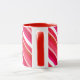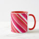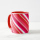 Mugg i skiktat, 3-dimensionerat utseende, diagonalt rand i många röda nyanser, djup till blekens rosa och vitt