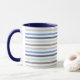 Den här marinblå kombinationen mugg har färglöst rand i blått, blek mint grönt och brunt.