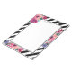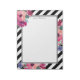 En anteckningsblock med personlig med stil och luft innehåller ett svart och vitt diagonalt strippat mönster med utspridda buketter med färgstarka blommigtar med vattenfärg. De pulserande blommorna finns i rosa, fuchsia och lila. Redigera exemplet namn som visas med ditt namn eller annan önskad text.