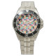 Denna manar har ett modernt mönster i mitten av århundradet, med olika halvcirklar och solida halvcirklar som sammanfogats på en vit fält.