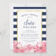 Välj de vackra inbjudningarna till den moderna klassiska bruden! Den har en fetstilt marin blå och vit rand-bakgrund, faux-guld-folie gräns och grund-gräns av blommor med rosa vattenfärg.