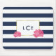 Den här muspekaren har en vågad blå och vit bakgrund i rand, faux guld gräns och en söt rosa i mjuka vattenfärger. Samordnar med våra kontorsmateriel, pappra produkter och tillbehör för marinen Rand & Rosa Peony. Anpassa med ett monogram, namn eller text som du vill ha!