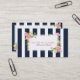 Elegant modernt marinblått och vitt lodrät rand med vit ruta och rosa och gul ros vattenfärg.