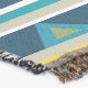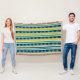 Blåa, gult och vita trianglar och rand bra insida kastar filt.
