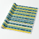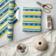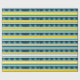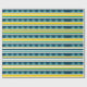 Gult, blå, vit rand och blå trianglar mönster.