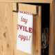 Kökshandduken har rand längs båda sidors längd, en kyckling och "ljugit vilda ägg!" nedanför den. Art Kredit: RedPepper. Njut av ditt nya Rand och Wicked Chickens Kitchen Towel!