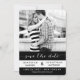 Svart och Vit Modern Rand-foto sparar datumkort. Elke Clarke© för MonogramGallery. Byt ut exemplarfotot mot förlovningen med ett eget. Annan tillgänglig färg.