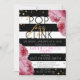 Dold black and white rand med rossed guld glitter punkter och rosa ros moderna inbjudningskort för bachelorette-partiet.