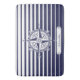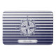 En nautisk design med en utsmyckad kompass steg på blått- och vitrandar och en etikett med anpassadetext.