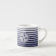 En nautisk design med en utsmyckad kompass steg på blått- och vitrandar och en etikett med anpassadetext.