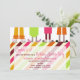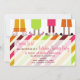 En inbjudan för födelsedagslummerparty som presenterar en illustration av fyra, parar av fot som ha på sig flamingoen, björnen, katten och kanintofflor. Pajamas har ljus färgintrig. Bakgrund göras randig. Personifiera texten.