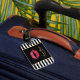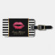 Vit för röd läppar för Makeupkonstnären görar randig modern svart bagagemärkre.