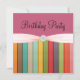 Underbar för någon födelsedagsfest, en regnbåge av randar över en mauve rosa bakgrund. Överträffat av med en gullig rosa buga och knäppas smyckningen.
