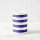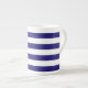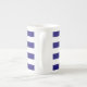 Mot efterkrav en uppsättning av samtida designad benporslinkaffe koppar som ska användas för dig eller som ska ges som en gåva. Blandning och matchstilar och färger för en eklektisk känselförnimmelse. Kaffe koppar gör en trevlig inflyttnings- gåva eller bröllopgåvan. Kungliga blått- och vitrandar.