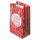 Cute Red och grönt stripe bakande presentsäck, perfekt för julkaka i party eller för försäljning av dina hemmade produkter på jordbrukarnas marknader och på hantverksmässor. Använda väskan för att presentera julklappar eller barntjänster för familj och vänner. För närvarande står det Made med kärlek från köket till Isabella Baker julkakor. Fullständigt anpassade att anpassa sig till ditt eget namn och produktinformation. Designad av Sarah Trett.