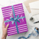 Gymnastik som slår in papper med lila- och vitrandar och gymnastiksilhouettes. Det är perfekt för jul eller för något tillfälle!