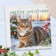 Det här festliga julkortet har en bild av en söt randig katt som sitter utanför sitt hus på en snöig eftermiddag, med vinterväxter och bär. Med 'Glad jul' önskan högst upp, är kortet slätt vitt på baksidan för ditt eget meddelande.