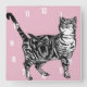 Randig katt Katter Konst Djur Barns Pastell Rosa D Fyrkantig Klocka