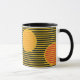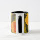 Svarten och gult görar randig, och orange och rött cirklar smyckar denna slå mugg.
