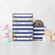 Ett mönster av guld ankrar medföljs av visad beställnings- text (: Ahoy! Det är en pojke! Grattis Elizabeth) som kan ändras till ditt önskade meddelande. I bakgrunden mörk - blått- och vitsuppleant i ett randigt mönster.